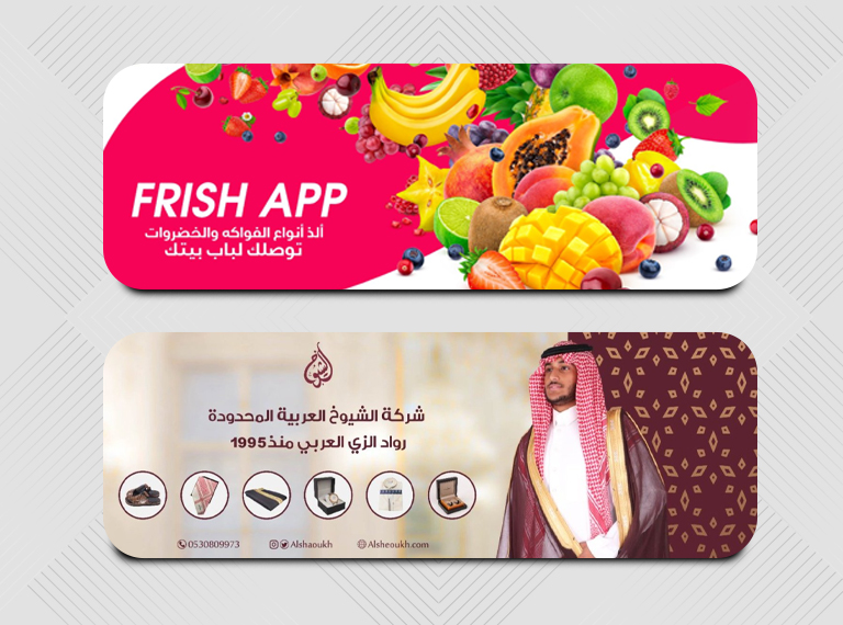 حن متأكدون من أن وسائل التواصل الإجتماعي هي الواجهة الأهم لكافة الشركات حول العالم في الوقت الحالي وباتت تمثل جزءً من الهوية البصرية الرقمية للشركات. ولهذا نقوم في ديزلاين بتقديم خدمة تصميم بنرات جميع شبكات التواصل الإجتماعي وفق خبراتنا التي تتفق مع معايير الشبكات المختلفة والتي نستطيع من خلالها توحيد هوية نشاطك.